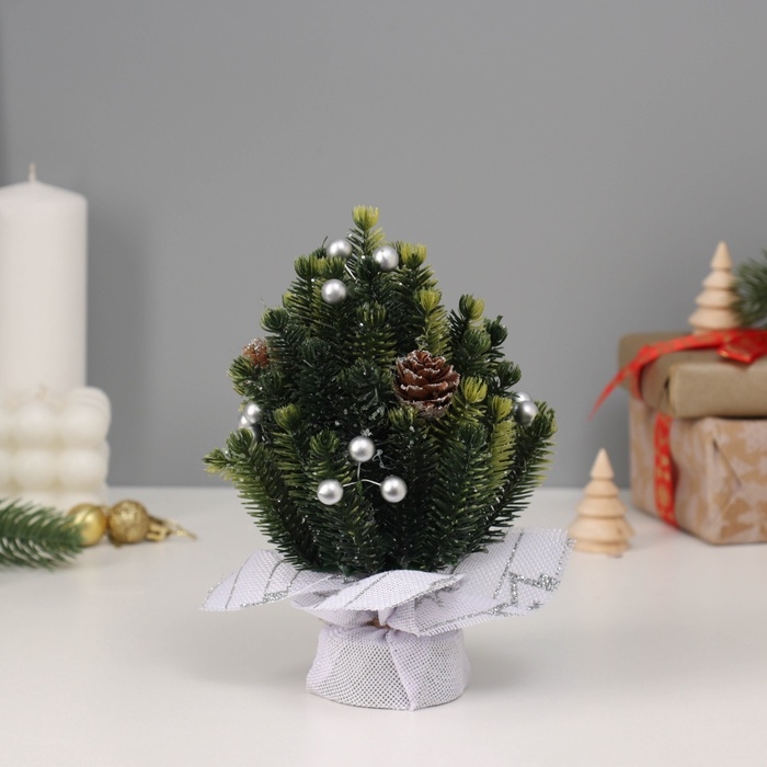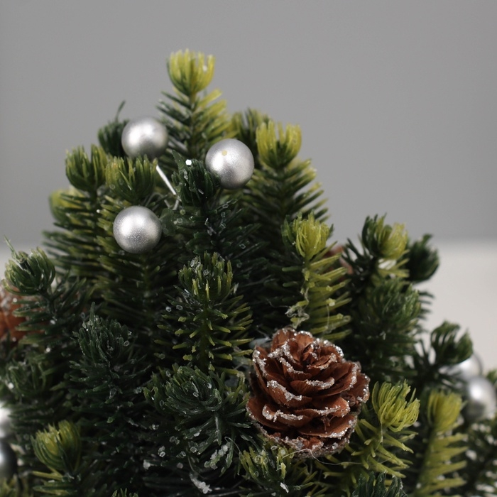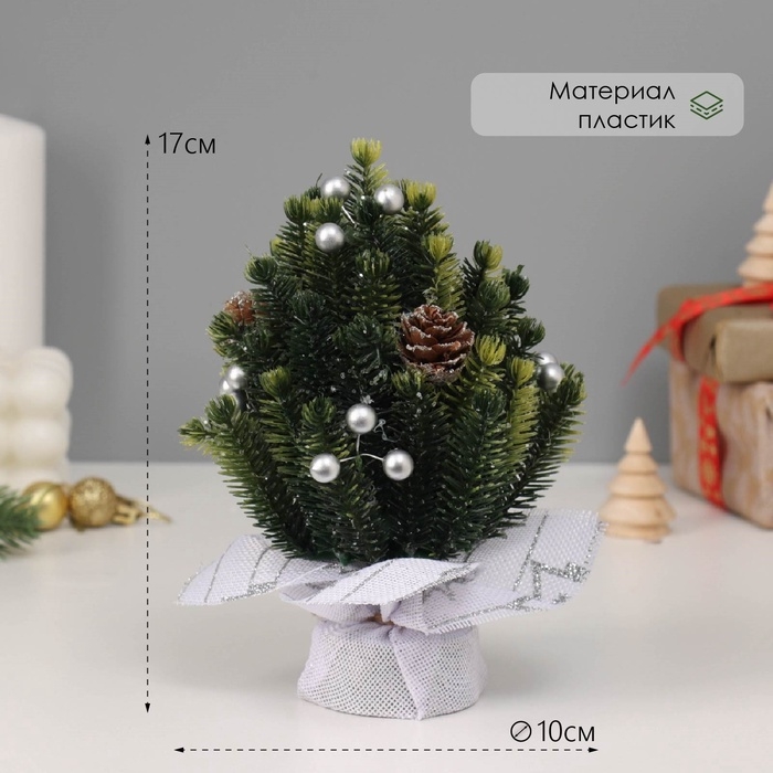 Искусственная ёлка настольная «Зимнее волшебство. Звезда», в мешочке, 17 см, ветки литые отгибаются, шишки, декор