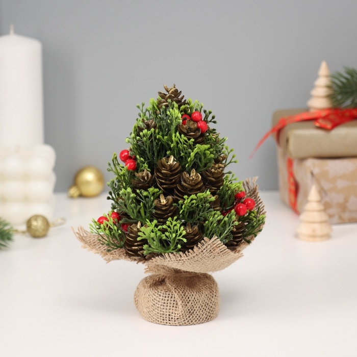 Ёлка декор "С зеленью и ягодками, в мешочке" 18х10 см