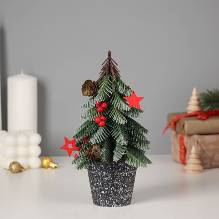 Ёлка декор "С ягодками, в горшочке" 22х7,5 см