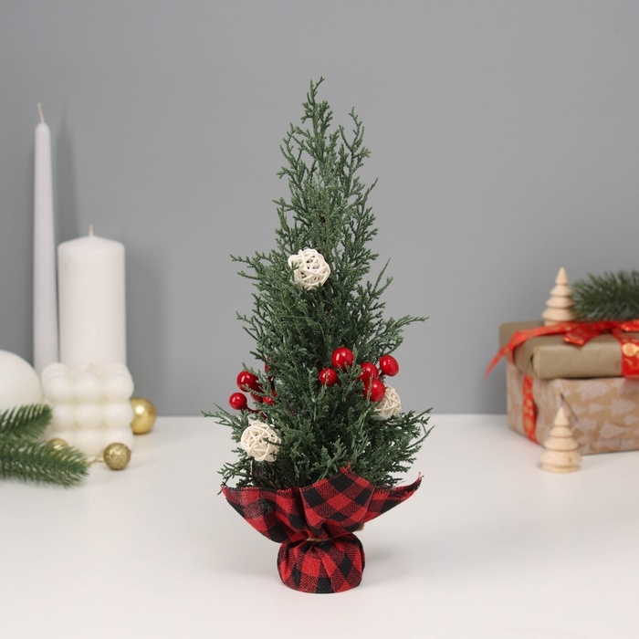 Ёлка декор "С ягодками и шариками, в мешочке" 27х10 см