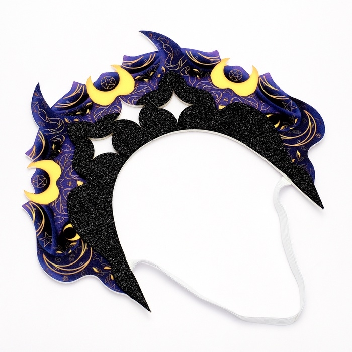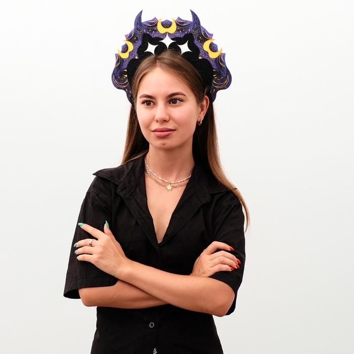 Этот кокошник станет прекрасным дополнением к карнавальному костюму или образу для тематической вечеринки. Он подойдет для тех, кто хочет создать загадочный и стильный образ.