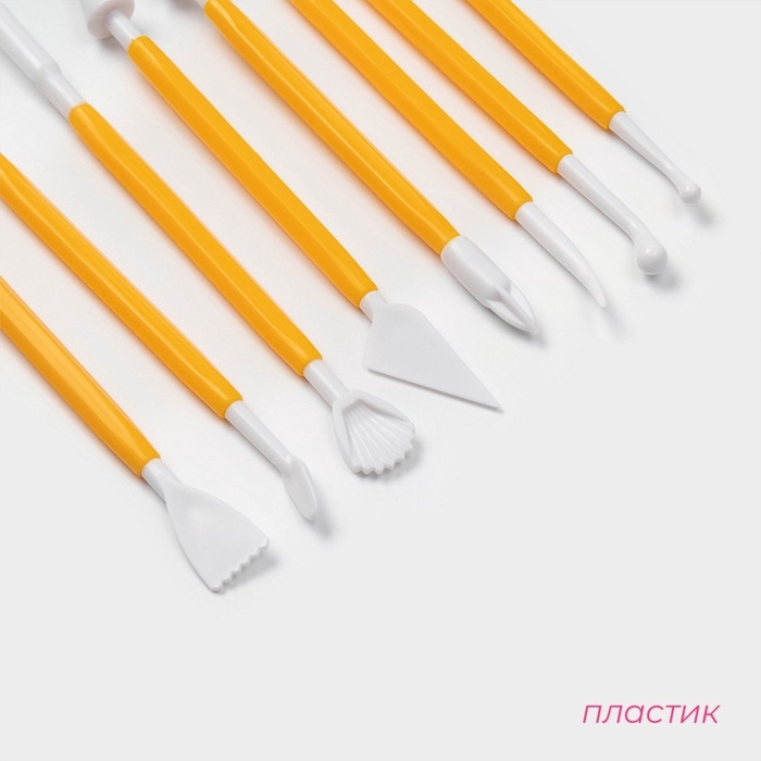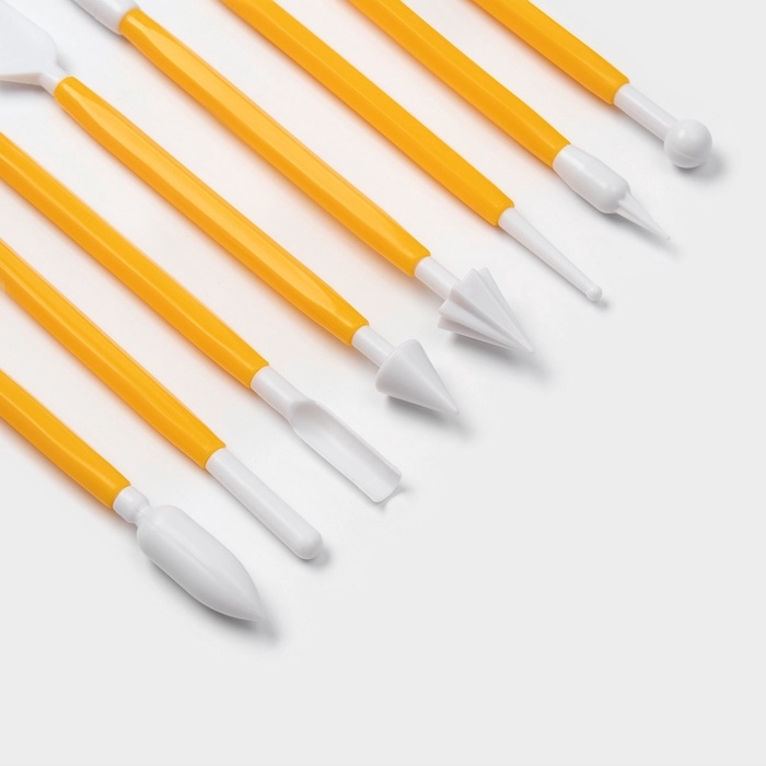 Набор инструментов для работы с мастикой Доляна, 8 шт, пластик, жёлтый