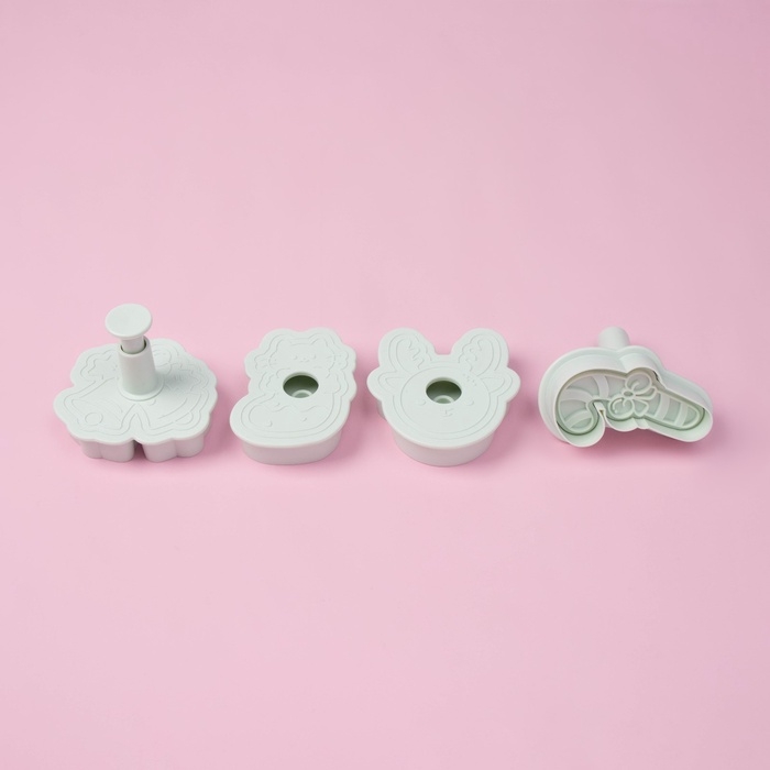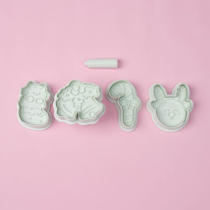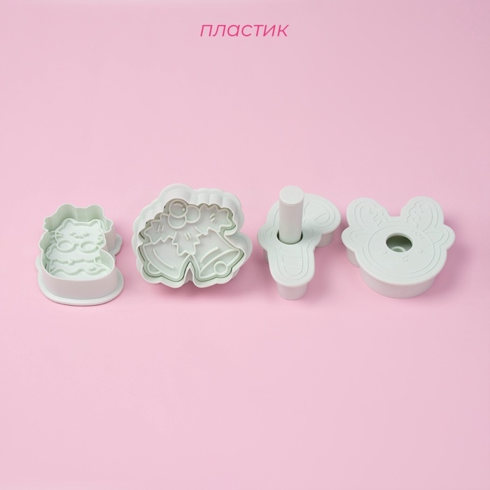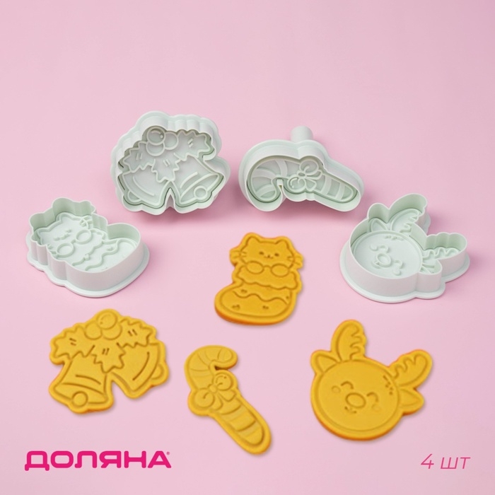 Плунжеры и печати кондитерские Доляна «Новый год», 2 в1, набор 4 шт, пластик, белые