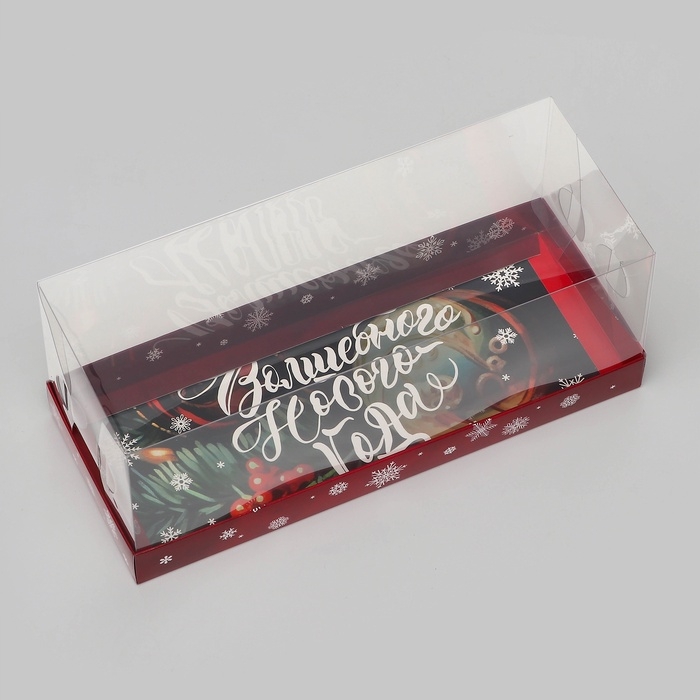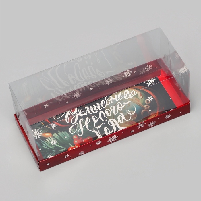 Коробка с прозрачной крышкой под рулет "Волшебного Нового года", 30 х 12 х 12