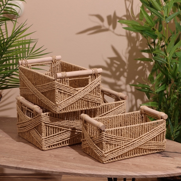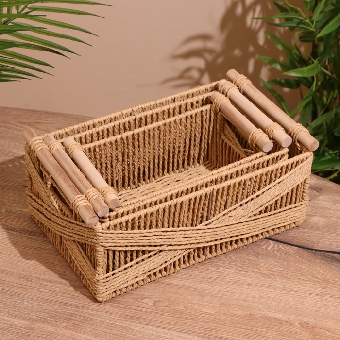 Набор плетёных корзин, 3 шт, 36х31х25 см