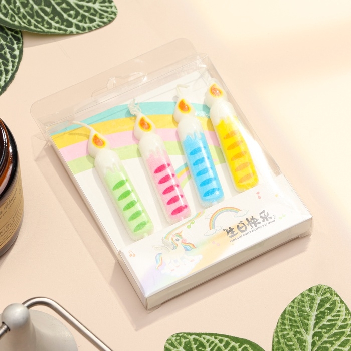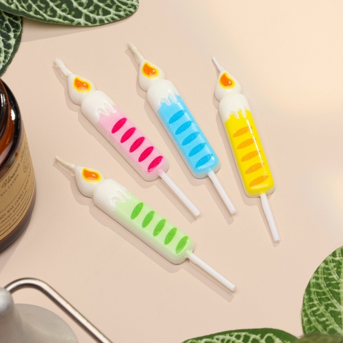 Свечи для торта "Детский праздник", 4 шт, разноцветные