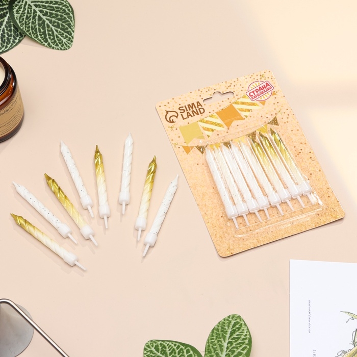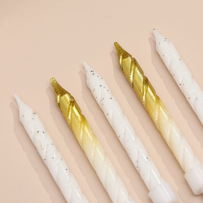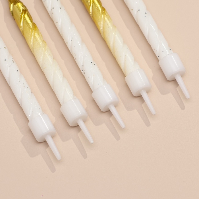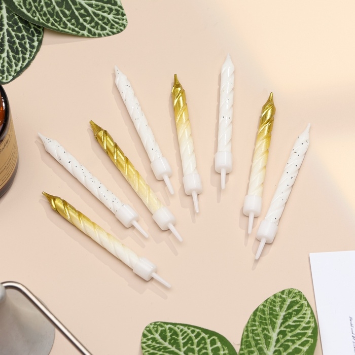 Свечи для торта "Спираль", 6 шт, белые и градиент золото с белым