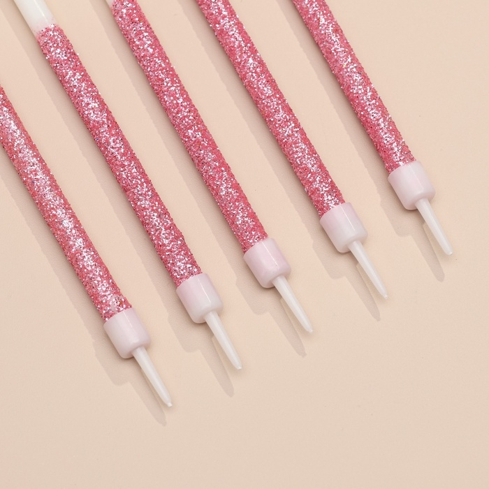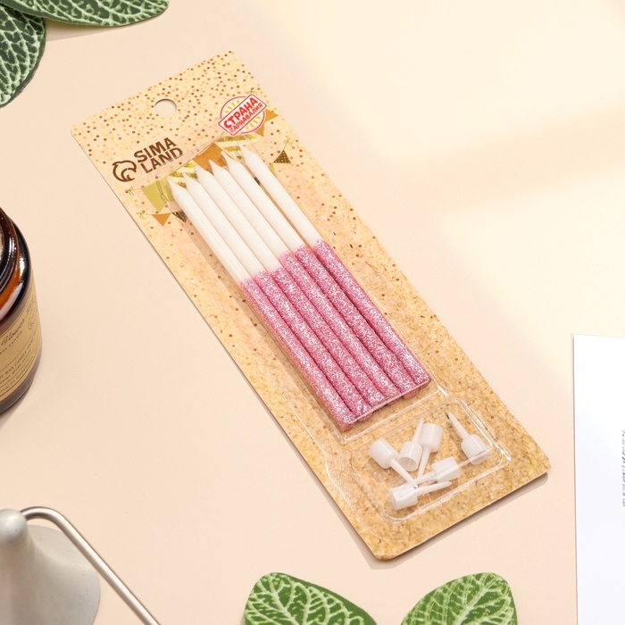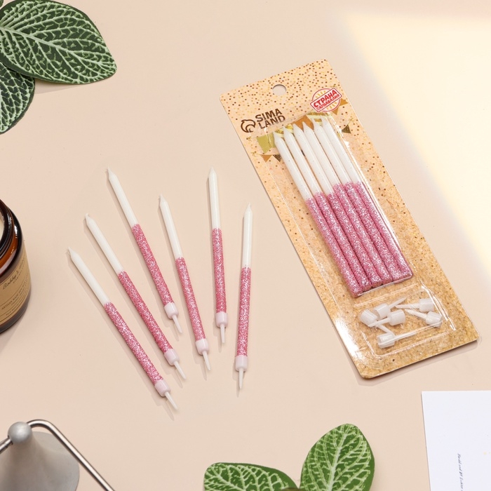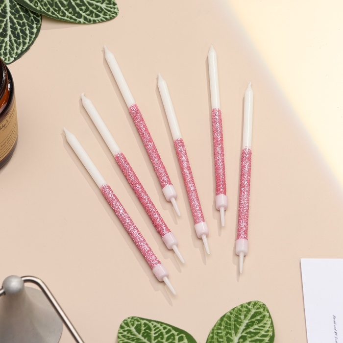 Свечи для торта "Блестящее сияние", 6 шт, белые с розовым