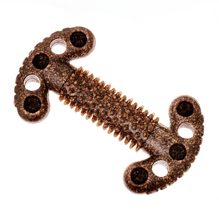 Помогает предотвратить проблемы с зубами. Благодаря фактурной поверхности и специально разработанной форма игрушка хорошо массирует дёсны питомца, предотвращает образование зубного камня.