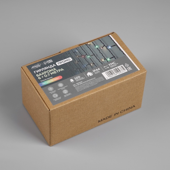 Гирлянда «Бахрома» 6 × 0.7 м, IP44, УМС, тёмная нить, 120 LED, свечение мульти, 220 В