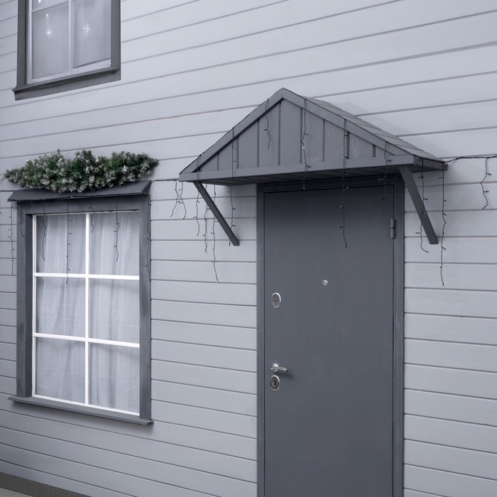 Гирлянда «Бахрома» 12 × 0.7 м, IP44, УМС, тёмная нить, 240 LED, свечение тёплое белое, 220 В