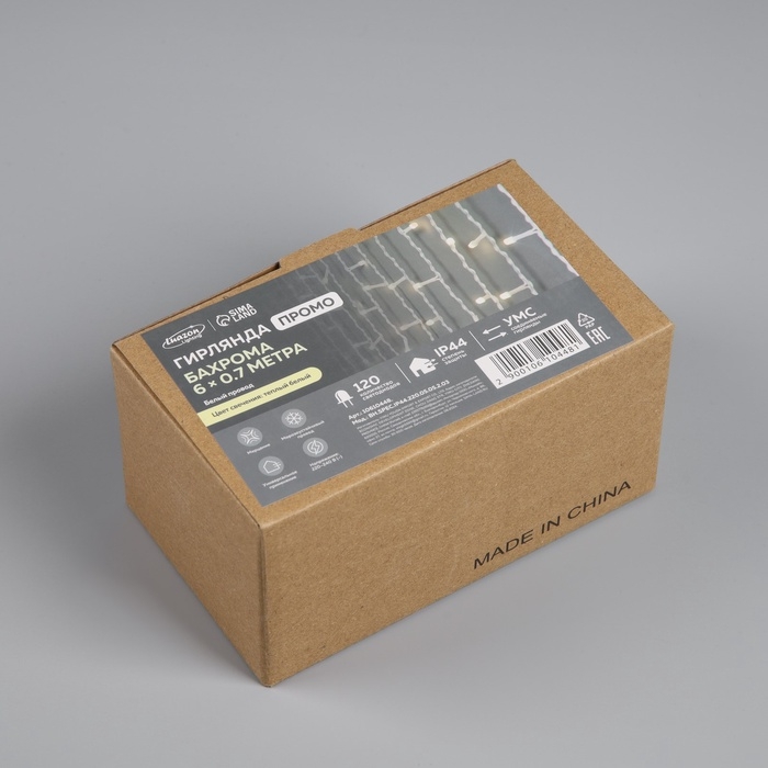 Гирлянда «Бахрома» 6 × 0.7 м, IP44, УМС, белая нить, 120 LED, свечение тёплое белое, мерцание, 220 В