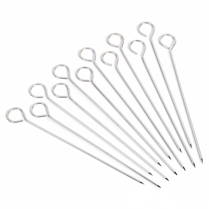 Набор шпажек - шампуров для шашлыка 12 шт, 20 см, рукоять - кольцо, металлические