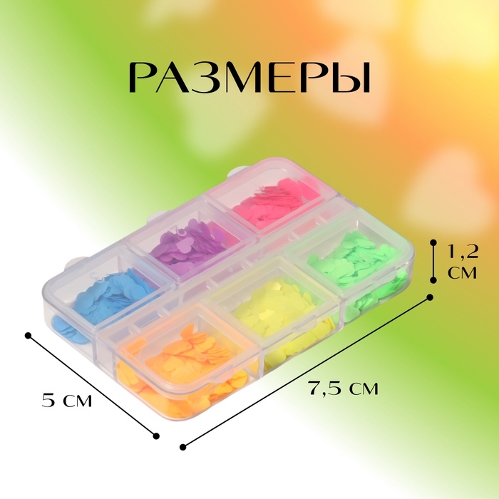 Пайетки для декора ногтей «Сердечки NEON», разноцветные
