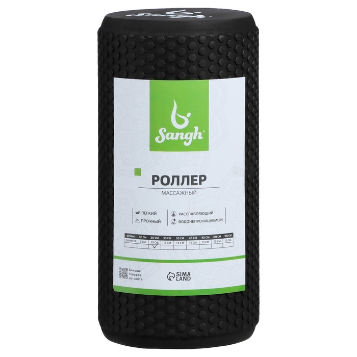 Ролик массажный Sangh, 30х15 см, цвет чёрный