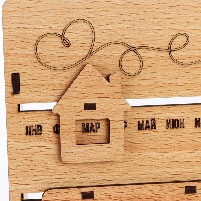 Вечный календарь «Sweet home» деревянный, 17,5 х 17 см