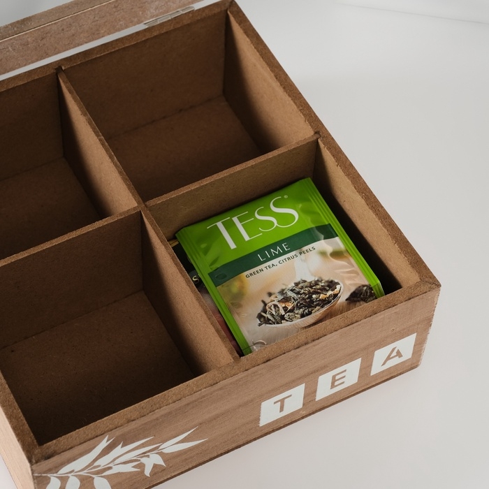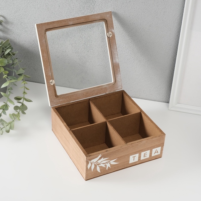 Шкатулка дерево с делениями "Ветка чайного дерева" 18х18х7 см