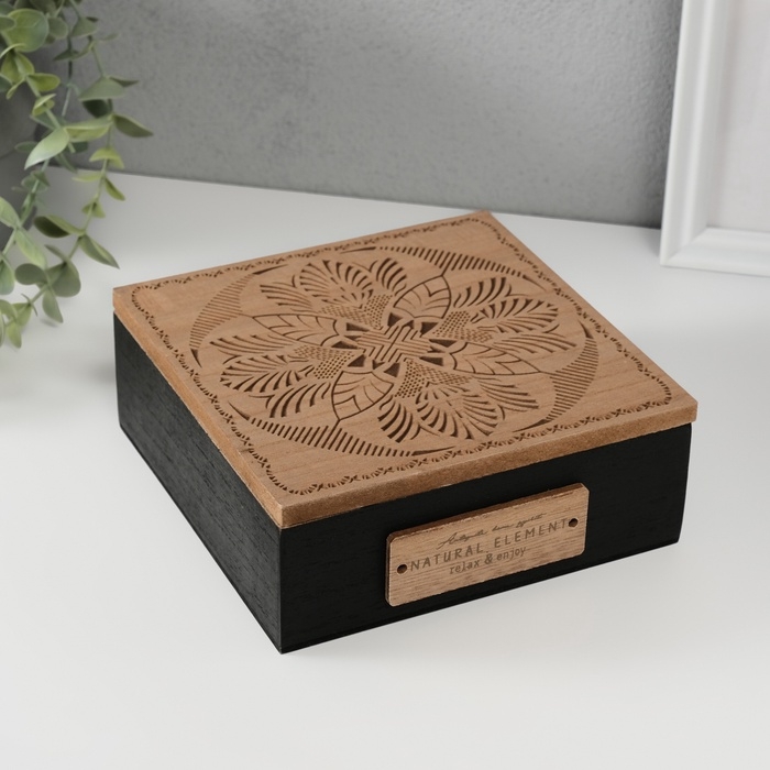 Шкатулка дерево с делениями "Мандала. Релакс и наслаждение" 16,5х16,5х6,5 см