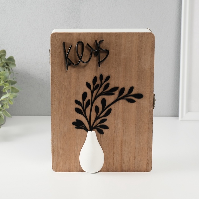 Ключница дерево 6 крючков "Ветка в вазе" 7,5х17х23,5 см