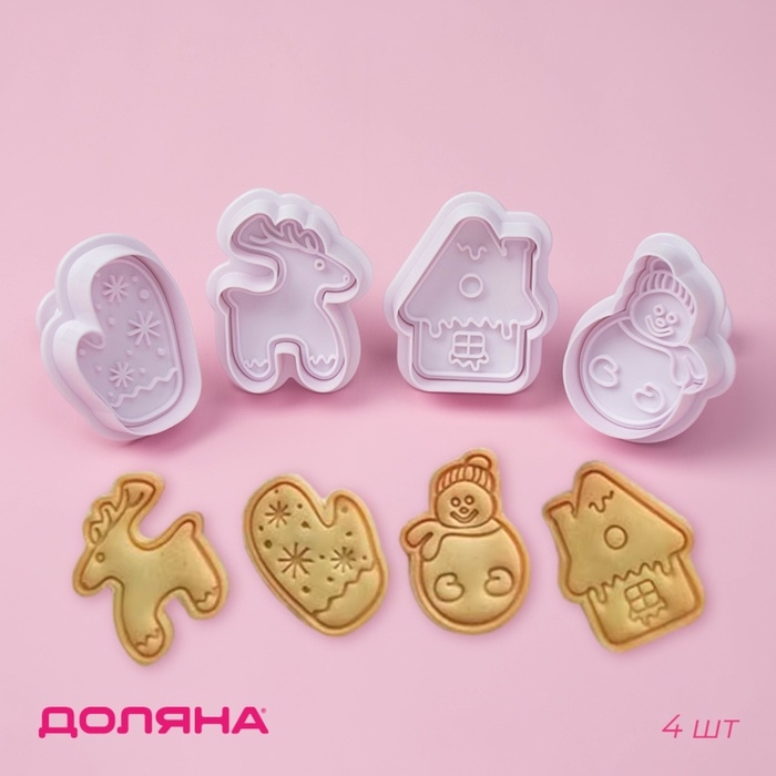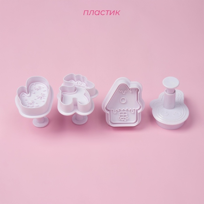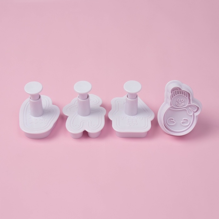Плунжеры кондитерские Доляна «Зимняя сказка», набор 4 шт, новогодние, пластик, белый