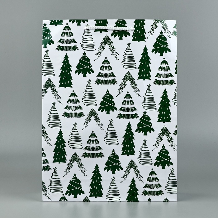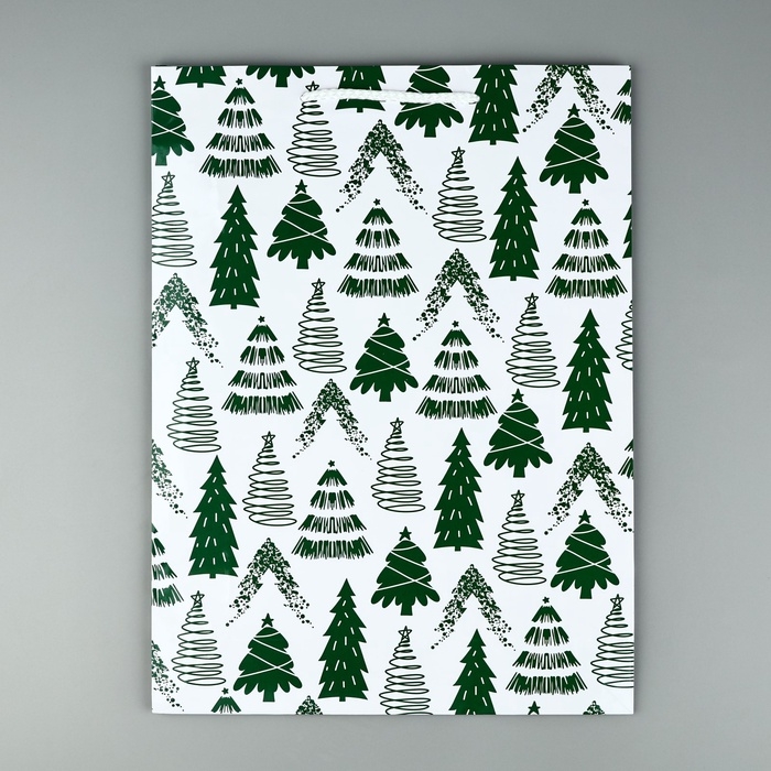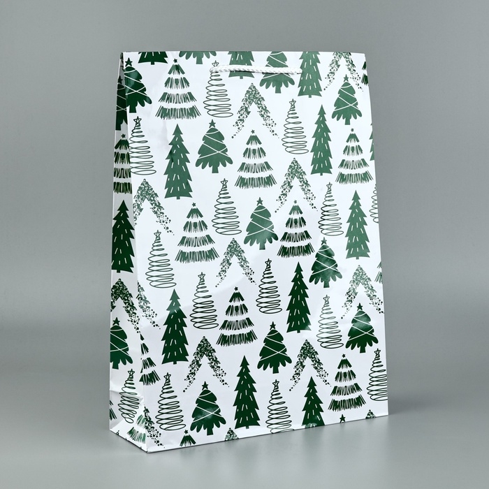 Пакет подарочный новогодний ламинированный «Ёлочки», L 28 х 38 х 9 см