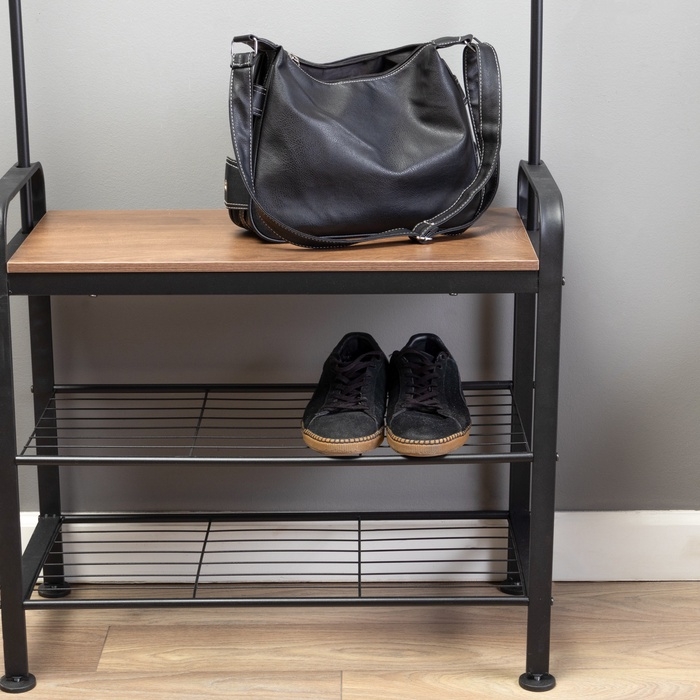 Прихожая София, с обувницей, с крючками, напольная, 1841×345×721 мм, Рустик Браун, Чёрный