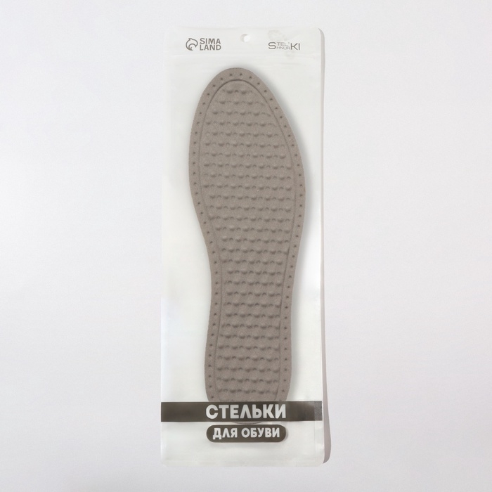 Стельки для обуви, универсальные, дышащие, р-р RU до 45 (р-р Пр-ля до 47), 28,5 см, пара, цвет серый