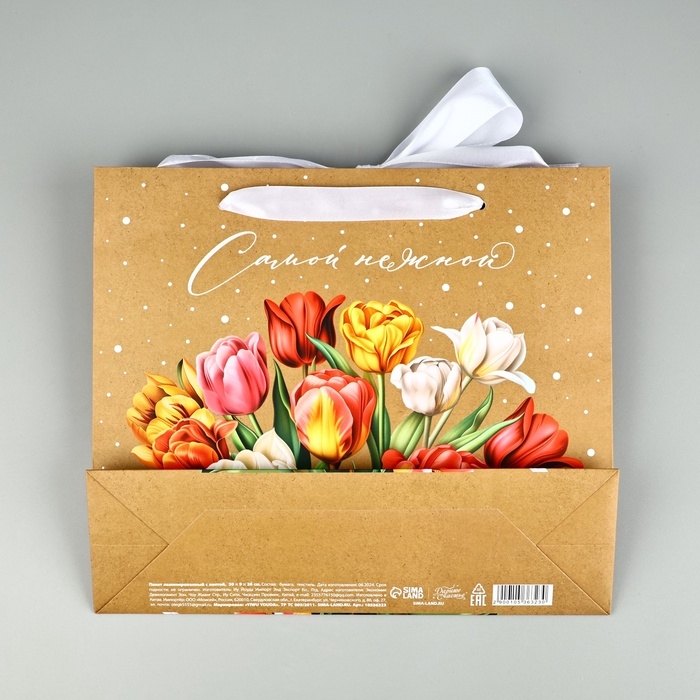 Пакет ламинированный с лентой «Самой нежной», M 30 × 9 × 26 см