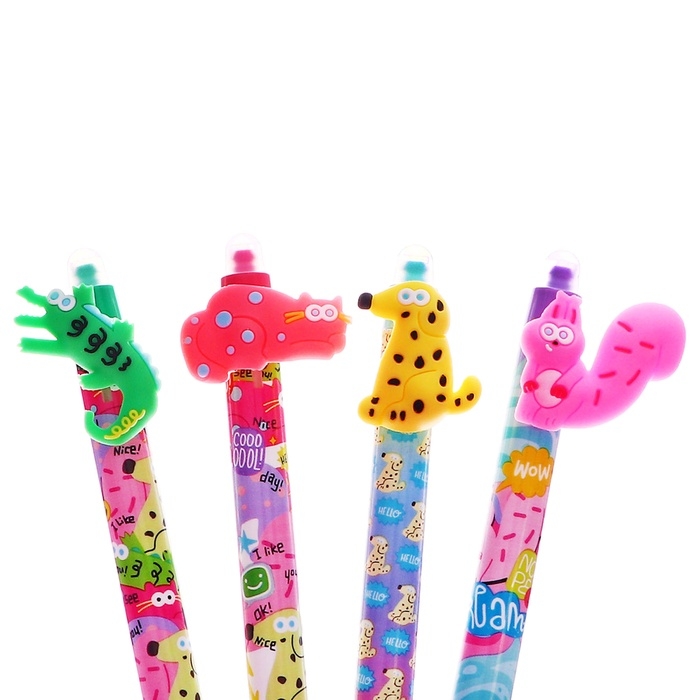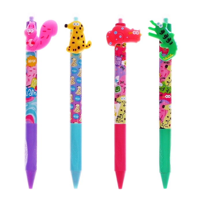 Ручка гелевая СТИРАЕМЫЕ ЧЕРНИЛА, стержень синий, 0.5 мм, автомат, корпус Зверушки МИКС