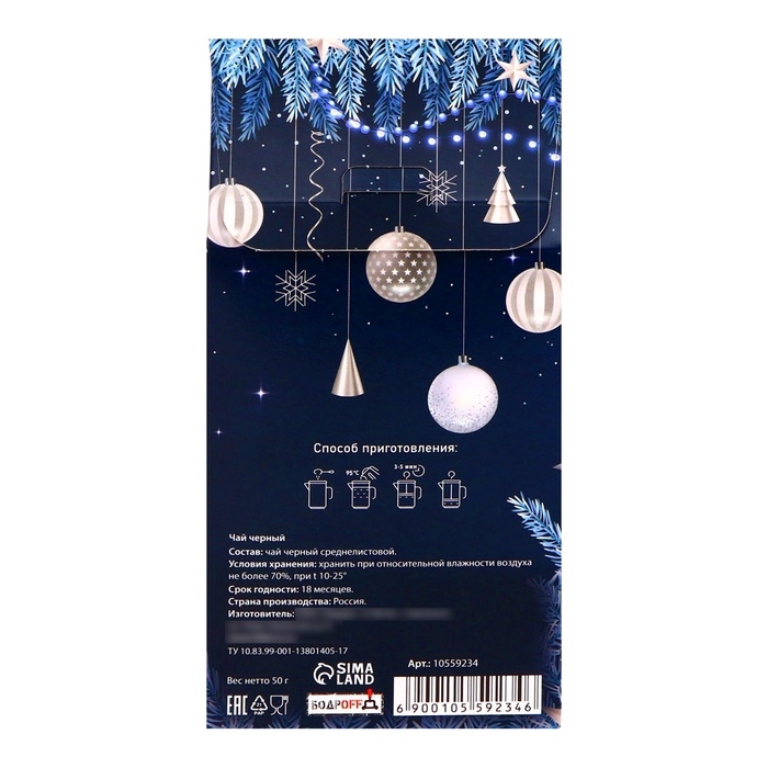Каждая чашка этого чая идеально дополнит ваши новогодние угощения и станет отличным компаньоном к сладостям, а также дружеским встречам с близкими. Поделитесь этой незабываемой чайной традицией и создайте особую атмосферу в кругу родных, наслаждаясь каждым глотком. "Сияние" — это не просто чай, это приглашение в мир сказки и волшебства, которое будет сопровождать вас в течение всего праздника и за его пределами. Позвольте себе окунуться в магию зимы с чашкой этого чудесного чая!
