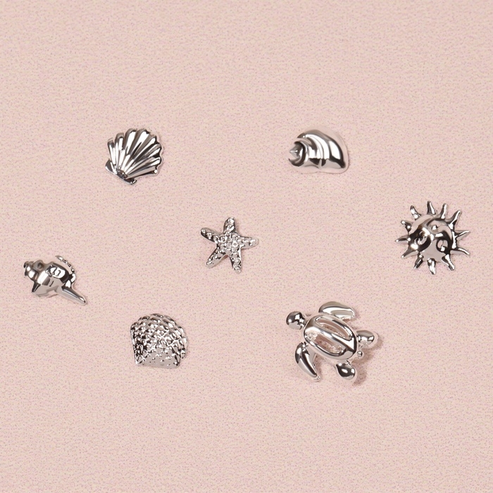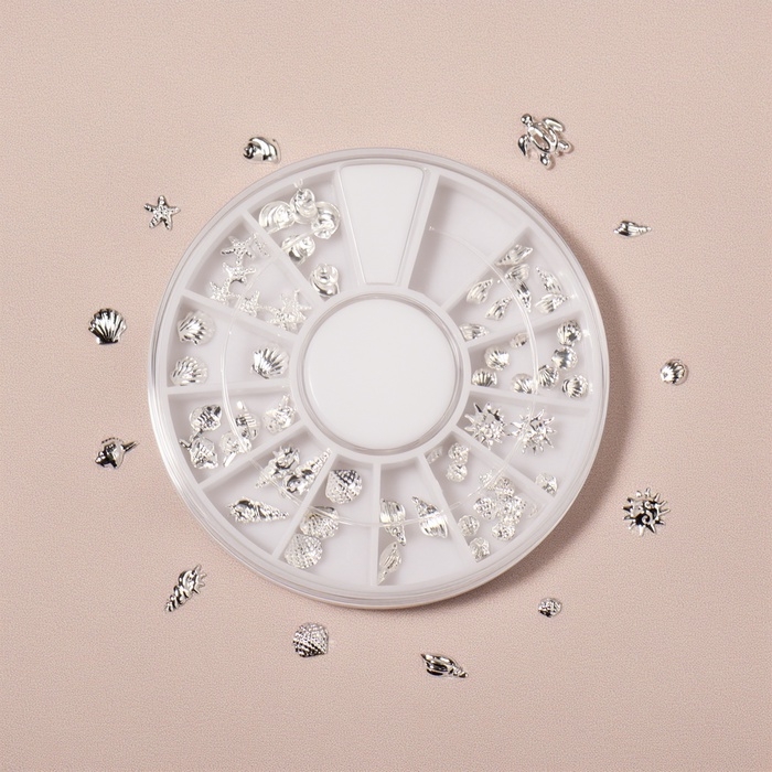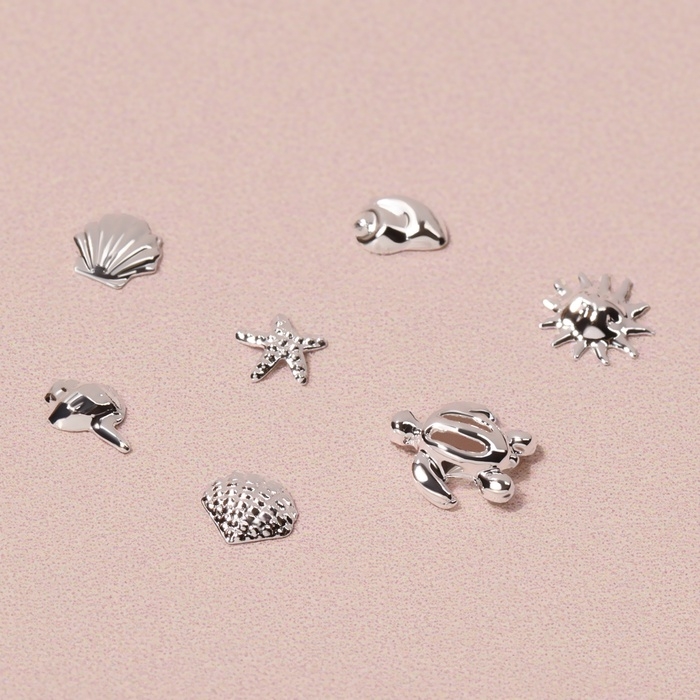 Фигурки для ногтей «Океан», металлические, объёмные, серебристые