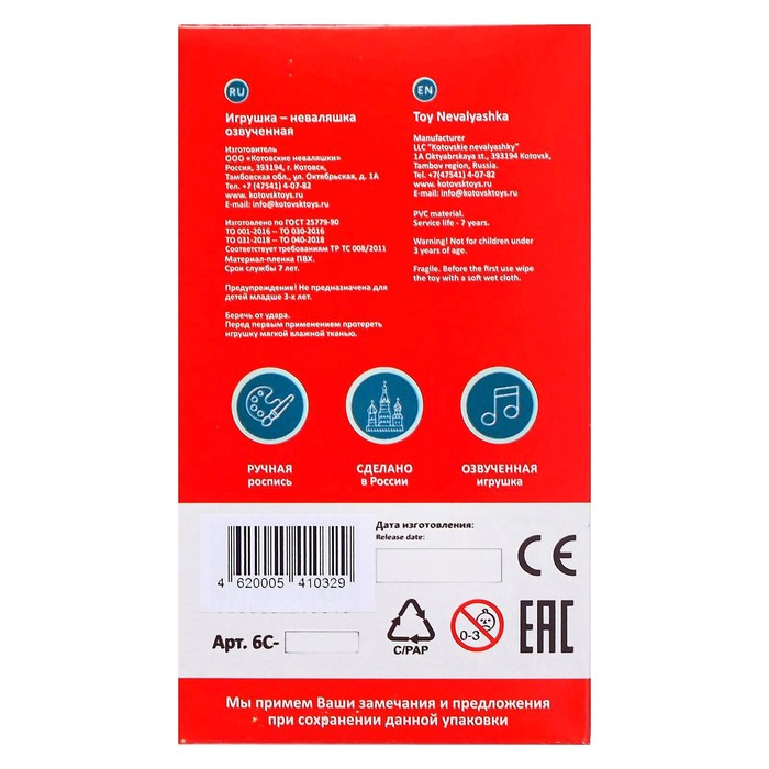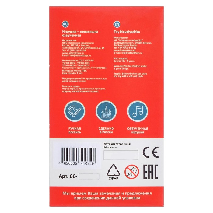 Неваляшка «Мальчик», в художественной упаковке
