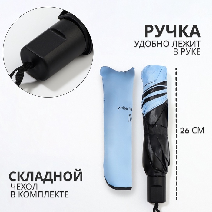Зонт механический «Однотонный», 4 сложения, 8 спиц, R = 47/55 см, D = 110 см, цвет голубой