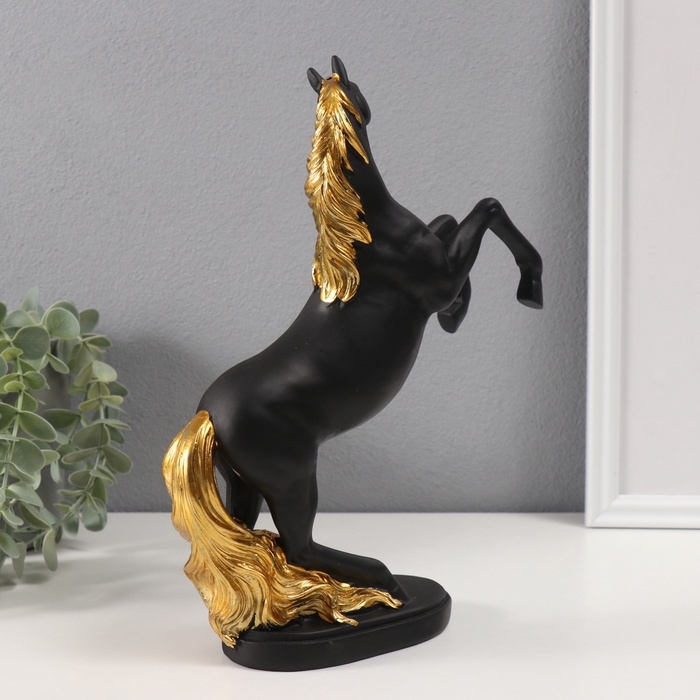 Сувенир полистоун "Конь чёрный с золотой гривой" 6,7х19,5х28 см