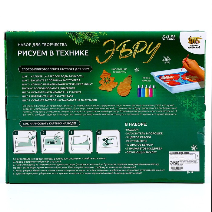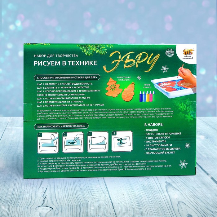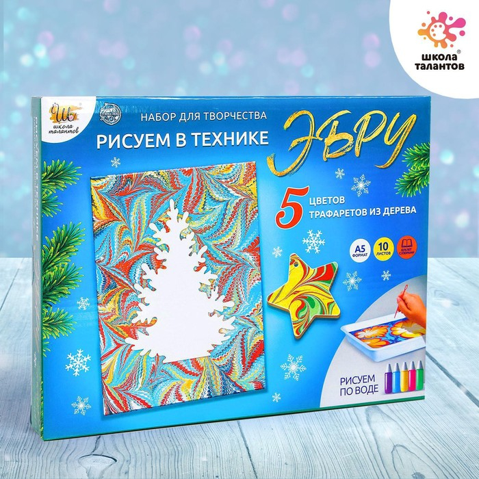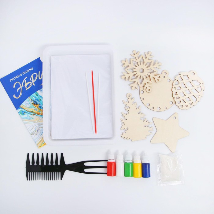 Набор для творчества «Рисуем в технике Эбру», А5, Новый год, 5 ёлочных украшений