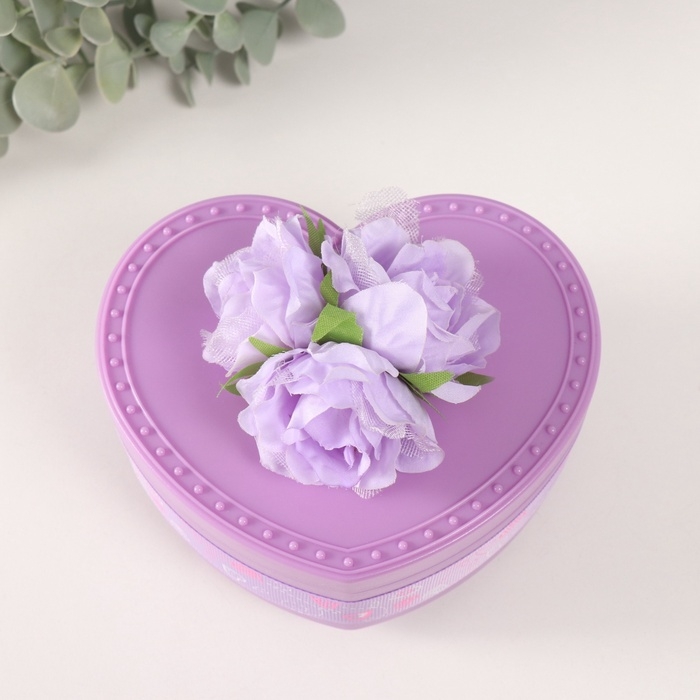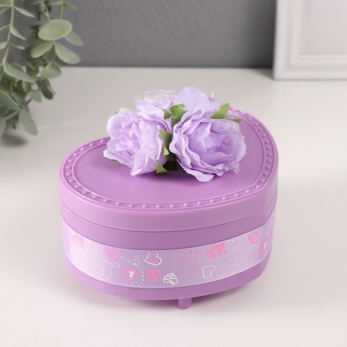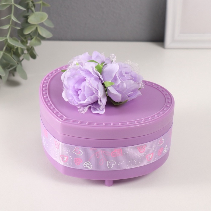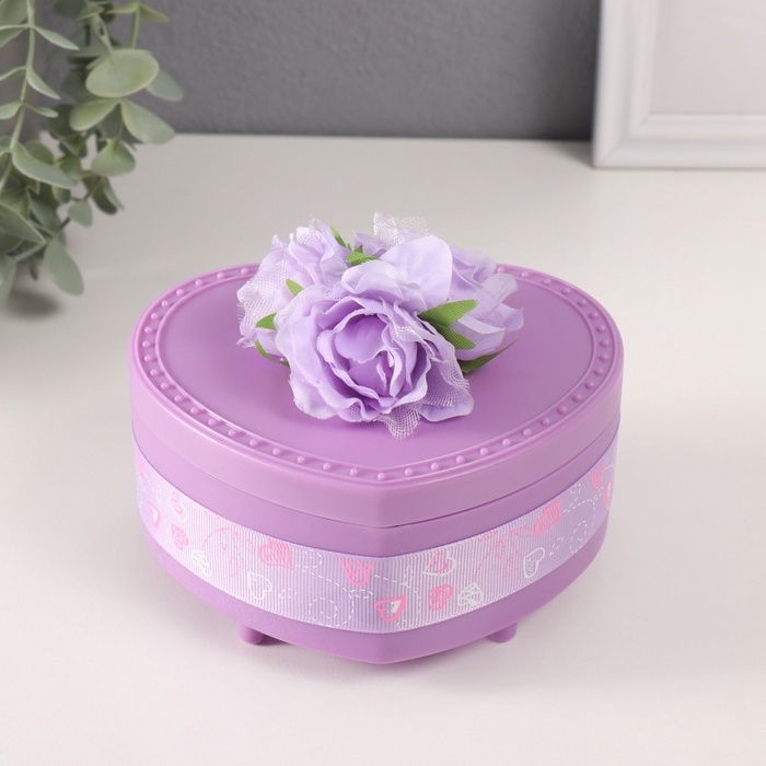Шкатулка музыкальная механическая "Нежные розы" фиолетовая 12х13,5х10,5 см