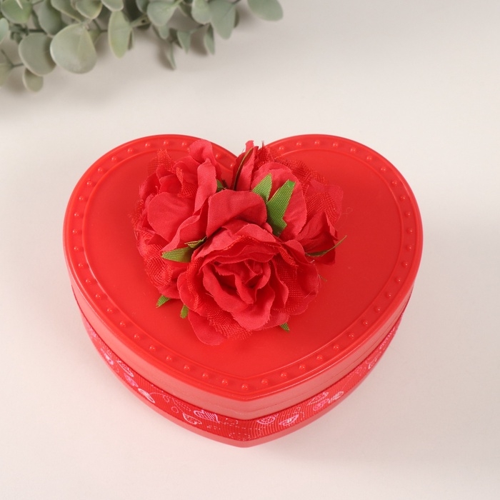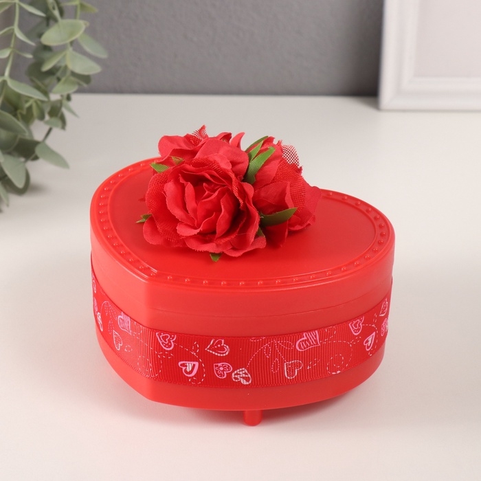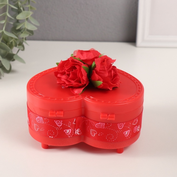 Шкатулка музыкальная механическая "Нежные розы" красная 12х13,5х10,5 см