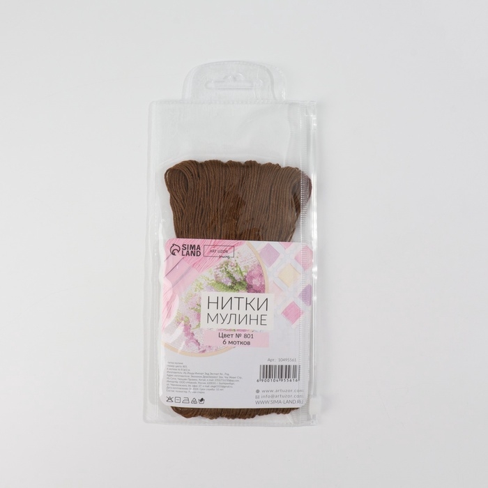Набор ниток мулине №801, 8 ± 1 м, 6 шт, цвет дуб