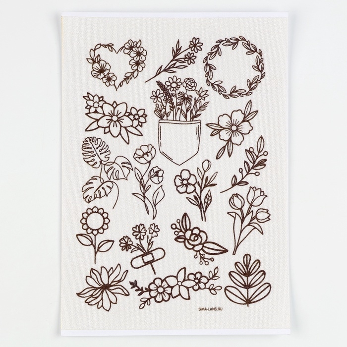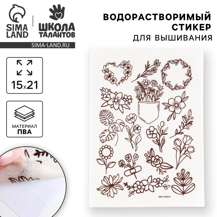 Водорастворимый стикер для вышивания «Цветочки», 15 х 21 см