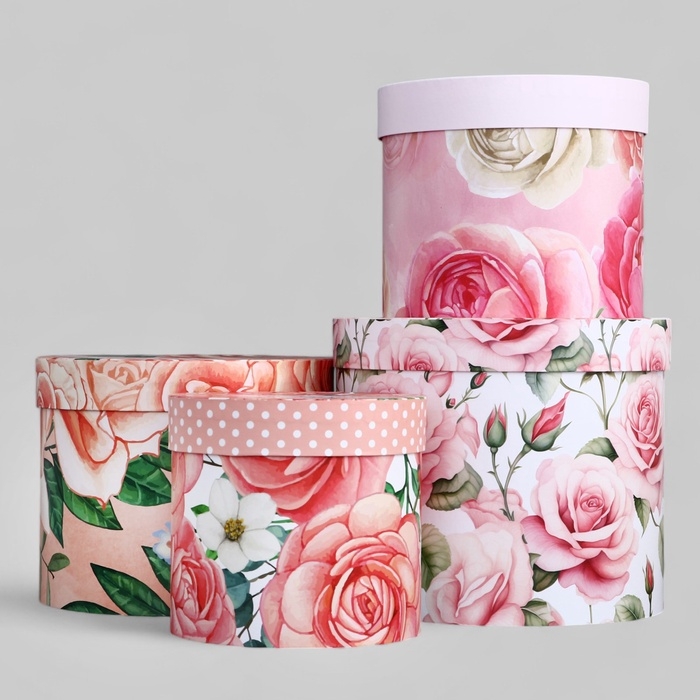 Не упустите возможность подарить радость своим близким — заказывайте набор шляпных коробок для цветов 4 в 1 и создавайте незабываемые моменты!