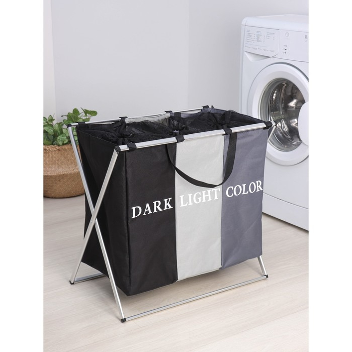 Корзина для белья Доляна Color, складная, тройная, 60×36×57 см