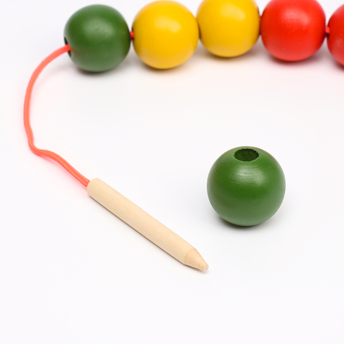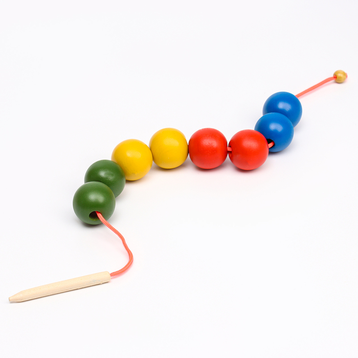 - Игра с бусами развивает мелкую моторику и обучает ребёнка навыкам шнуровки.