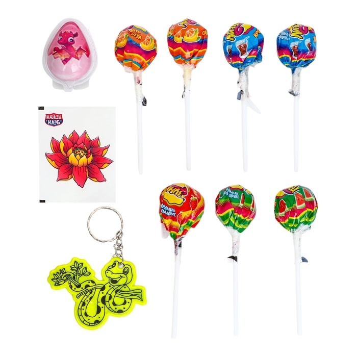 Что делает этот набор особенным? Внутри вы найдете не только восхитительную карамель, но и дополнительные подарки: стильную татуировку и забавный брелок в виде змеи. Это отличная возможность для детей не только насладиться сладостью, но и порадовать себя интересными аксессуарами, которые добавят ярких красок. Татуировка добавит элемент веселья, позволяя детям проявить свою креативность, а брелок станет отличным помощником для ключей или рюкзака.