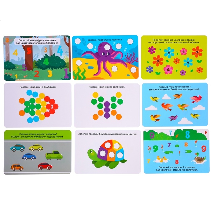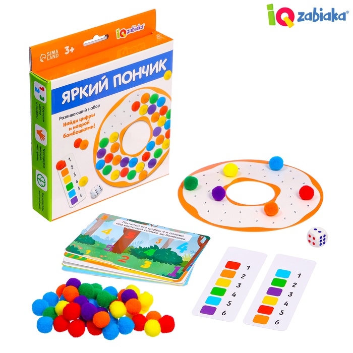 «Яркий пончик» — развивающий набор для детей от 3 лет. Увлекательный досуг поможет малышу запомнить цвета и выучить цифры в игровой форме. Яркие бомбошки привлекут внимание маленьких непосед, а познавательные карточки разовьют логическое мышление.