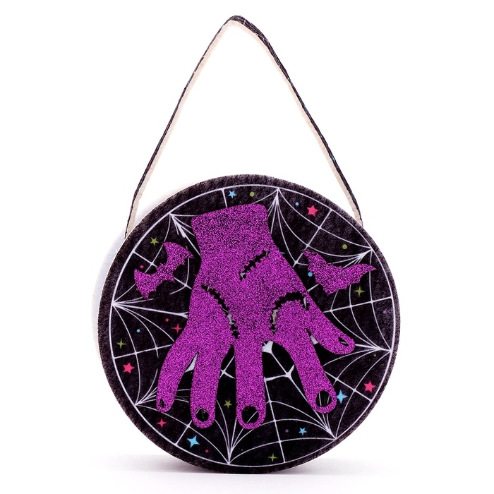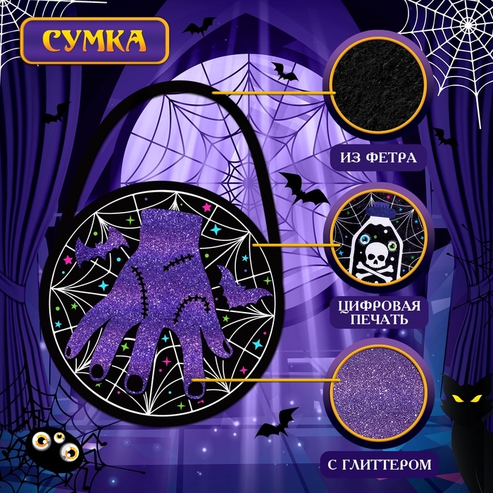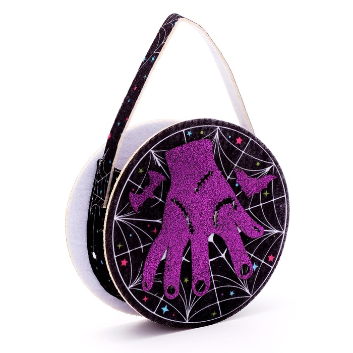 - Сумка — небольшая сумка из фетра с яркими блестящими рисунками станет удобным аксессуаром для хранения маленьких сокровищ.