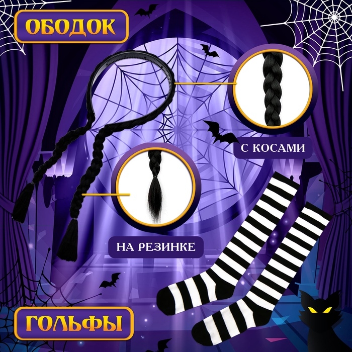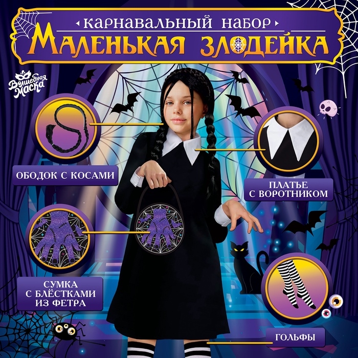 Карнавальный набор «Маленькая злодейка»: платье, ободок с косичками, гольфы, сумка, рост 104-110 см