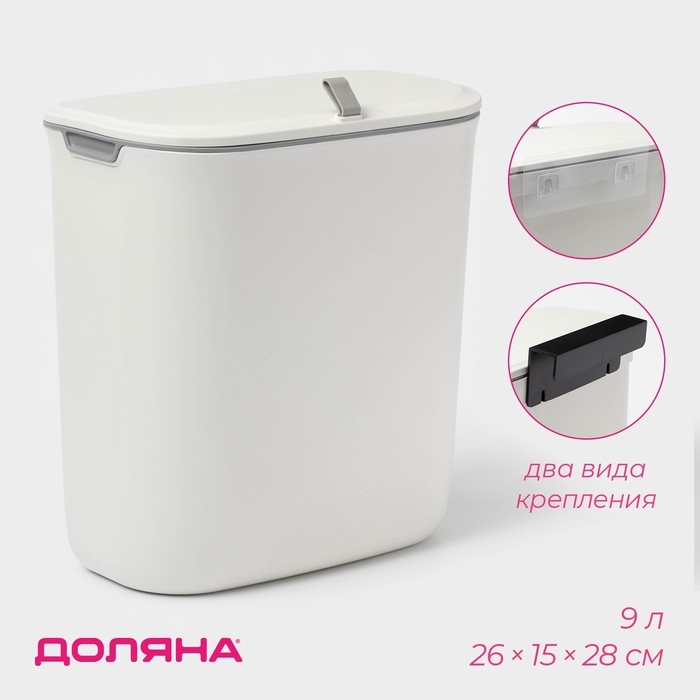 Ведро для мусора подвесное Доляна, 9 л, 2 вида крепления, белое