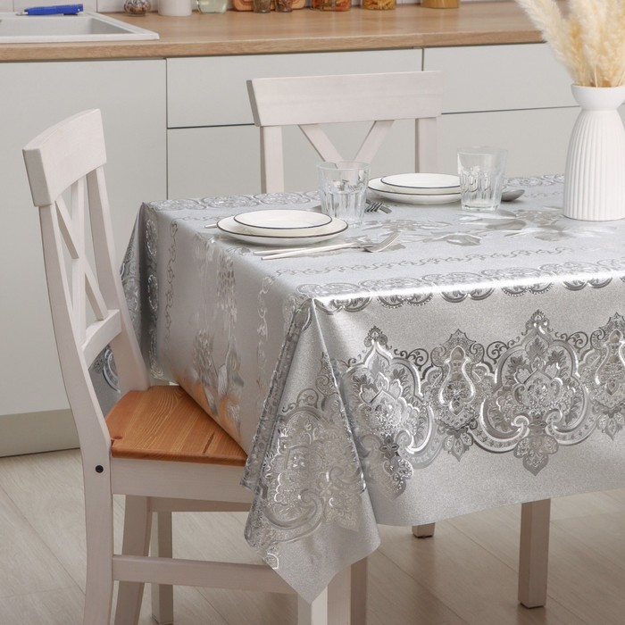 Клеёнка на стол, на тканевой основе, рулон 20 метров, ширина 137 см, толщина 0,25 мм, цвет серебряный