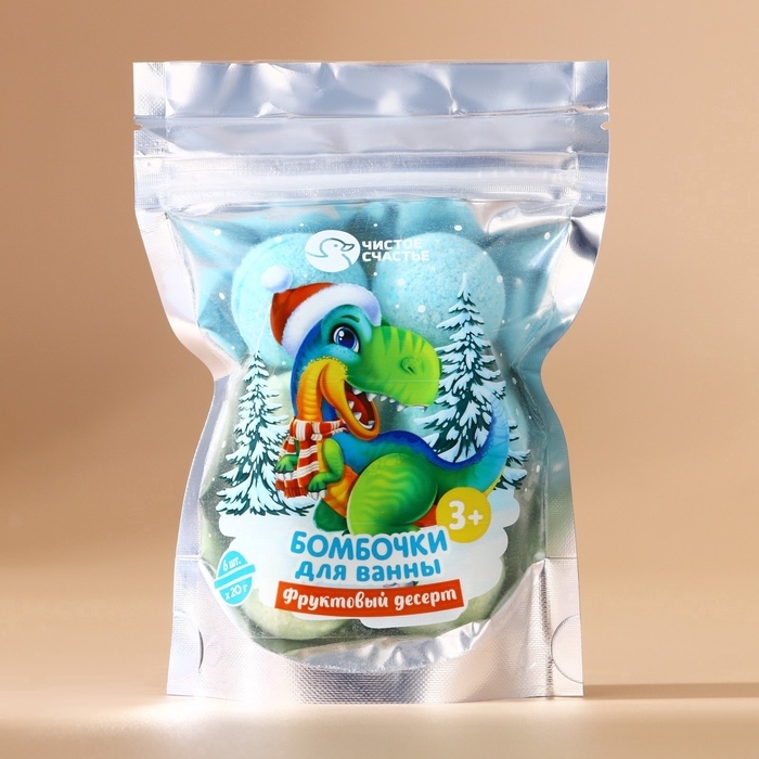 Набор детский бомбочки для ванны ЧИСТОЕ СЧАСТЬЕ «Динозаврик», 6х20 г, Новый Год