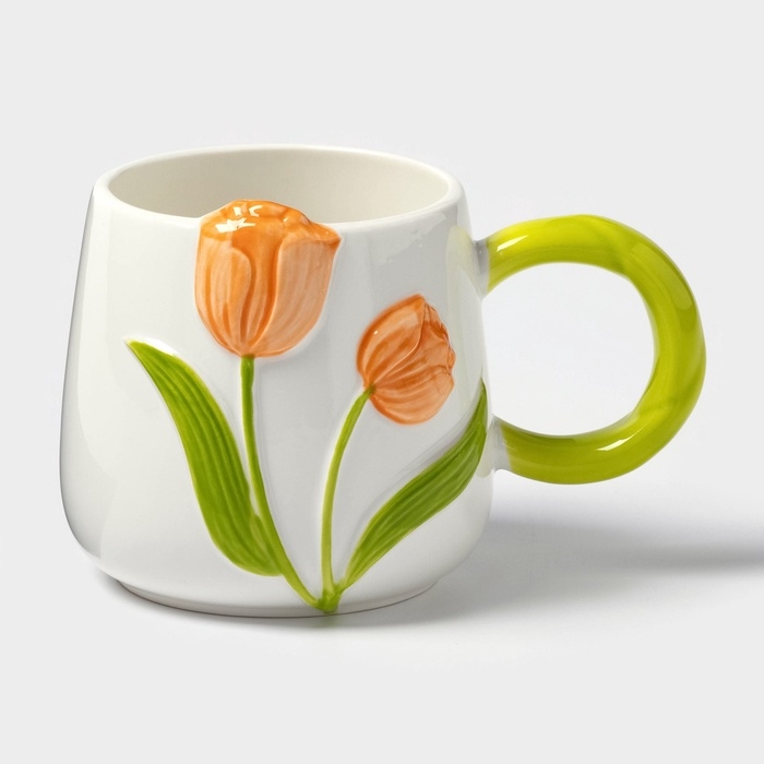Кружка «Тюльпан», 430 мл, оранжевый цветок, керамика, белая
